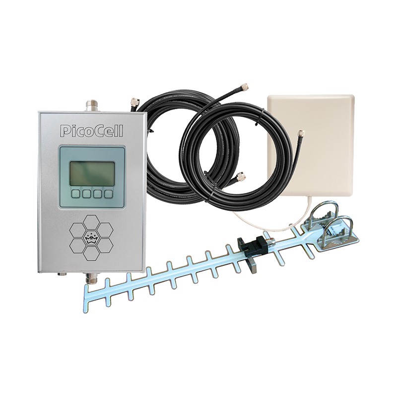 В комплекте применен репитер PicoCell 1800 SXL с усилением 80 дБ и выходной мощностью до 25 дБм (320 мВт). Прибор оснащен графическим ЖК-дисплеем для удобной настройки усиления, а также авторегулировкой для защиты усилителя и сотовой сети оператора от возможных помех и перегрузок.